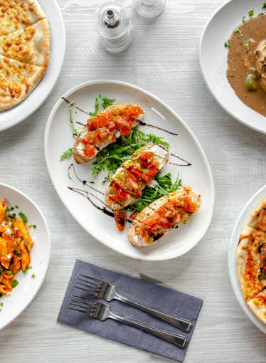 Penne pasta loaded with cheese, our house-made creamy sauce tossed on a frying pan with onion, garlic, chicken, mushroom, oregano, and dry basil covered with cheese baked in an oven
